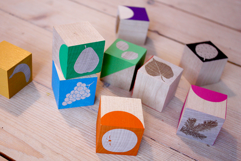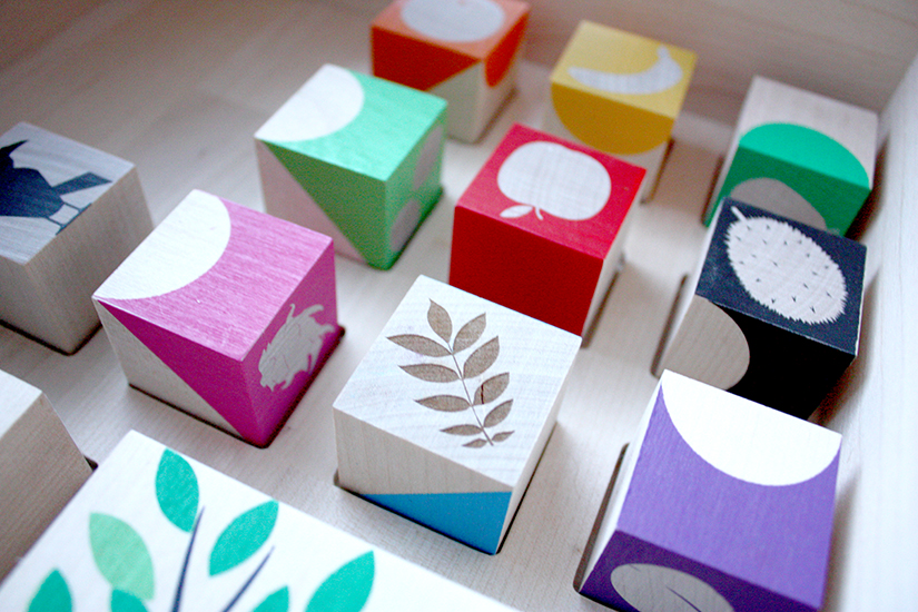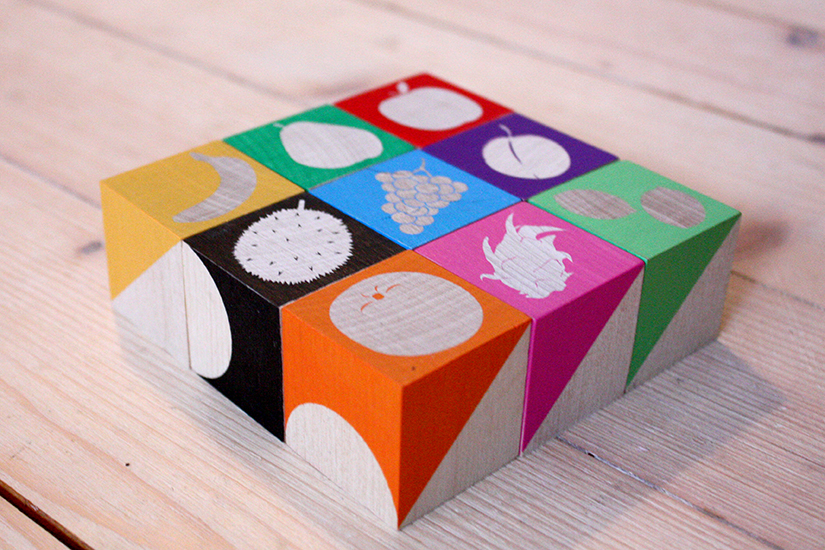 Ni tre-terninger med silketrykte og graverte motiver på alle sider. Ved hjelp av terningene får barna møte ulike farger, former, blader og frukter (både frukter man finner i norske butikker og de to vietnamesiske fruktene «dragefrukt» og «stinkfrukt»). Alle treklossene egner seg til bygge og rive-lek, noe som er gøy både for yngre og eldre barn. Klossene kan gjerne brukes sammen med de andre eventyrene i serien for å lære om farger, former, bokstaver og tall, og for å kunne bygge ennå høyere tårn.